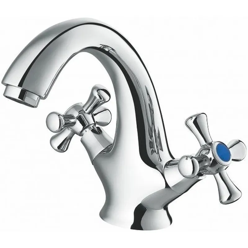 Смеситель для раковины Viko V-1501 двухвентильный.Характеристики: Цвет: хром. Материал: латунь. Механизм: керамическая кран-букса. Управление: двухвентильное. Фиксированный излив. Гибкая подводка. Аэратор. Стандарт подводки: G 1/2. Крепление: шпилька. Монтаж: на раковину. В комплекте поставки: Смеситель. Гибкая подводка. Крепление.