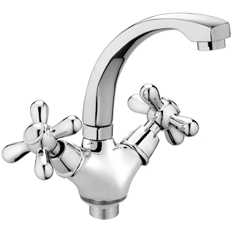 Смеситель для раковины Viko V-2011 двухвентильный.Характеристики: Цвет: хром. Материал: латунь. Механизм: керамическая кран-букса. Управление: двухвентильное. Поворотный излив. Гибкая подводка. Аэратор. Стандарт подводки: G 1/2. Монтаж: на раковину. Крепление: гайка латунная. В комплекте поставки: Смеситель. Гибкая подводка. Крепление.