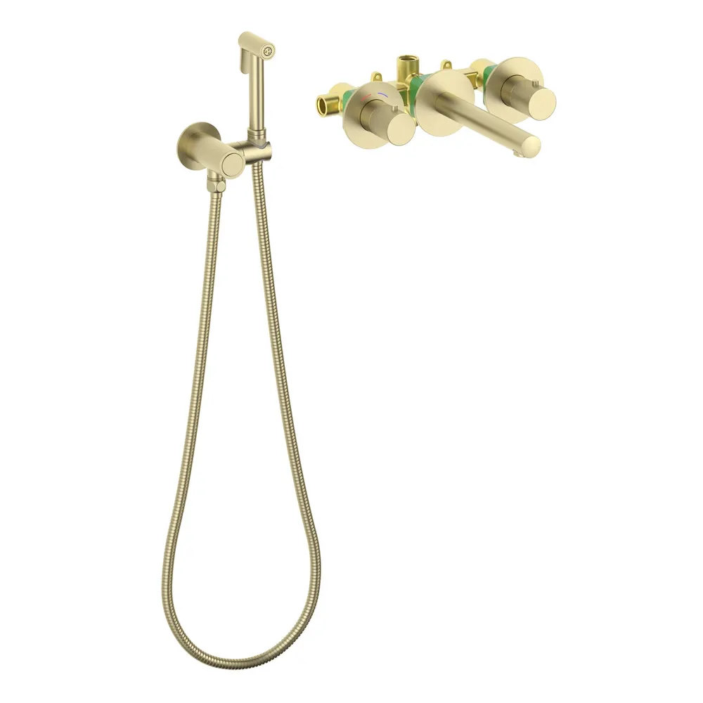 Смеситель для раковины встроенный с термостатом, с гигиеническим душем Timo Saona золото матовое арт-2383/17SM