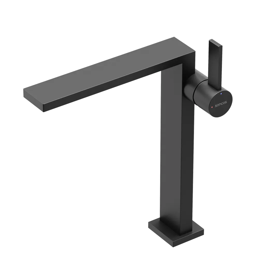 Смеситель для раковины высокий SANCOS Linn, черный матовый, арт. SC9020MB