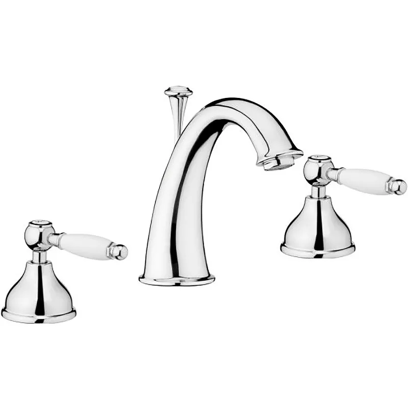 Смеситель для раковины Webert Dorian DO750101015.Характеристики: Цвет: хром. Цвет ручек: белый. Материал: латунь. Управление: вентильное. Вращение излива: фиксированный. Механизм: керамическая кран-букса. Стандарт подключения: 1/2. Тип подводки: гибкая. Монтаж: на раковину. Отверстия для монтажа: 3. В комплекте поставки: Смеситель. Донный клапан. Гибкая подводка.