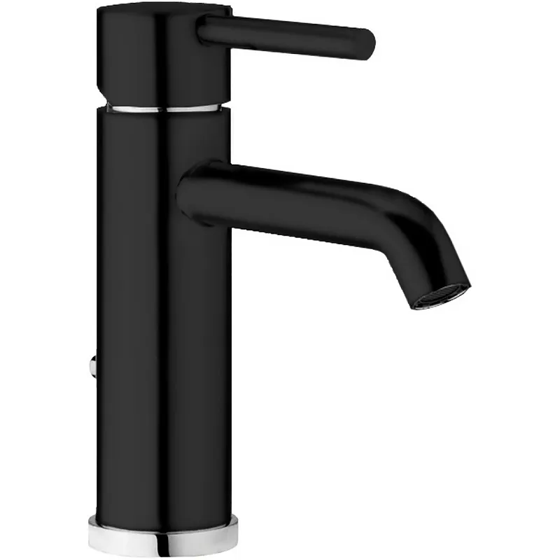 Смеситель для раковины Webert Elio EL830102564.Характеристики: Цвет: черный матовый. Материал: латунь. Управление: рычажное. Вращение излива: фиксированный. Механизм: керамический катридж. Стандарт подключения: 1/2. Тип подводки: гибкая. Монтаж: на раковину. Отверстия для монтажа:1. В комплекте поставки: Смеситель. Гибкая подводка. Донный клапан.