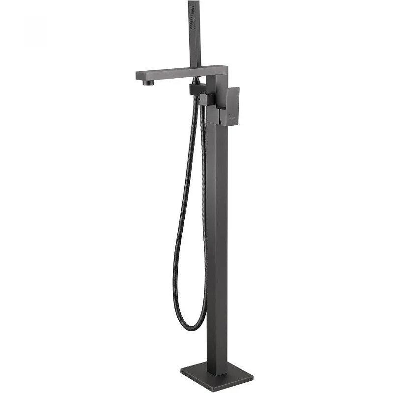 Ищете надежный и стильный смеситель для ванны? Напольный смеситель для ванны Abber Daheim AF8215NG с душевым гарнитуром станет идеальным решением для вашей ванной комнаты. Изготовленный из латуни, данный смеситель отличается высокой прочностью и долговечностью. Матовая поверхность и современный дизайн подчёркивают его элегантный вид, а однорычажное управление обеспечивает удобство использования.