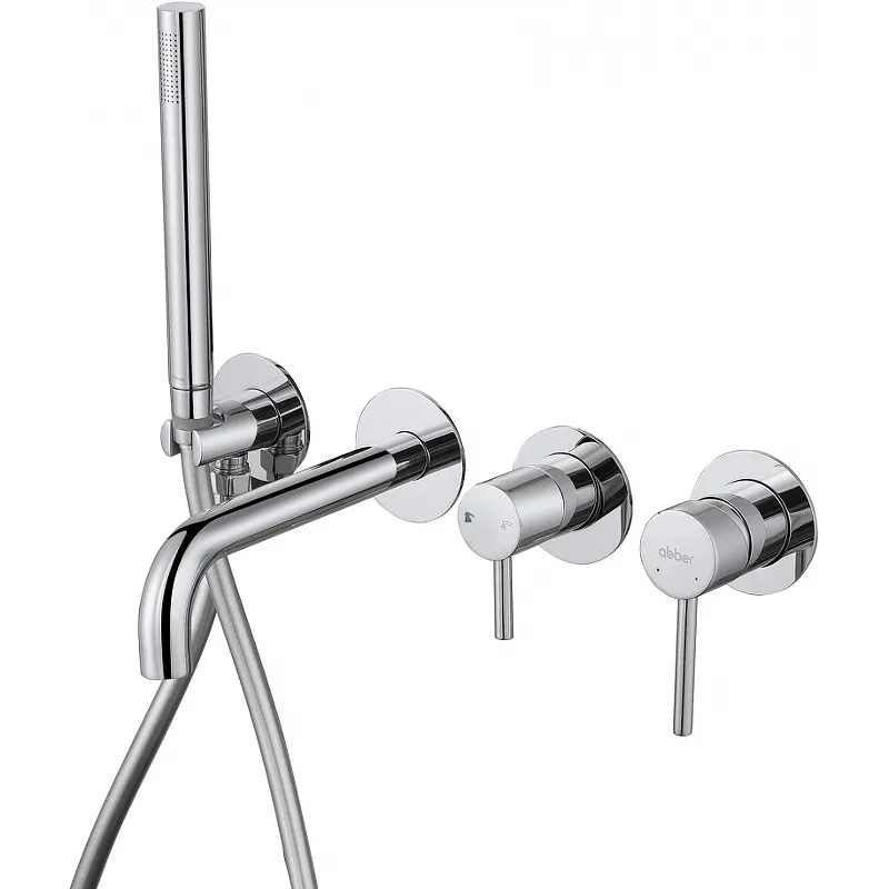 Смеситель для ванны Abber Wasser Kreis AF8130.Характеристики: Цвет: хром. Материал: латунь. Управление: однорычажное. Механизм: керамический картридж. Излив: фиксированный. Аэратор. Количество режимов струи ручного душа: 1. Стандарт подводки: 1/2. Отверстия для монтажа: 4. Монтаж: встраиваемый. В комплекте поставки: Смеситель (внешняя и внутренняя часть). Излив. Ручной душ. Душевой шланг. Шланговое подключение с держателем ручного душа.
