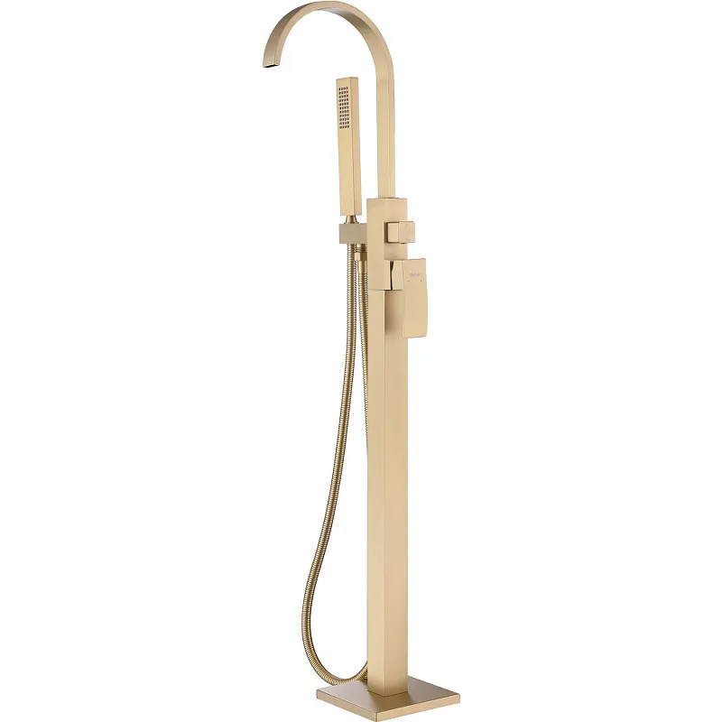 Смеситель для ванны Abber Wasserfall AF8615G, выполненный в изысканном золотом матовом цвете, станет настоящим украшением вашей ванной комнаты. Этот напольный смеситель с душевым гарнитуром от немецкого бренда Abber сочетает в себе современный дизайн и высокое качество. Материал из латуни обеспечивает долговечность и надежность, а однорычажное управление делает использование максимально удобным.