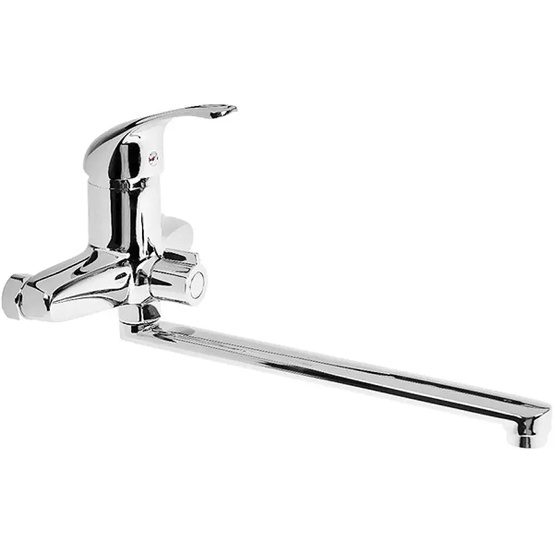- С длинным изливом смеситель для ванны: длина излива 300 мм позволяет удобное использование воды в различных целях.