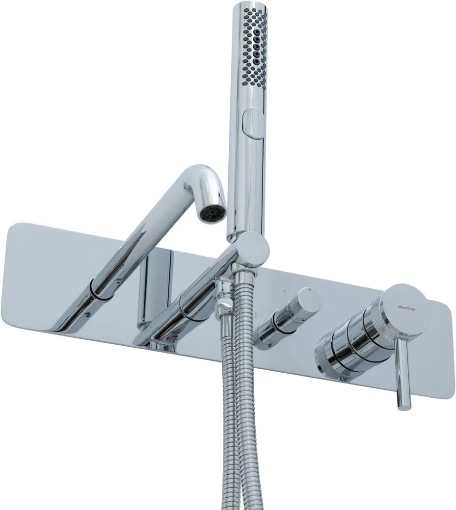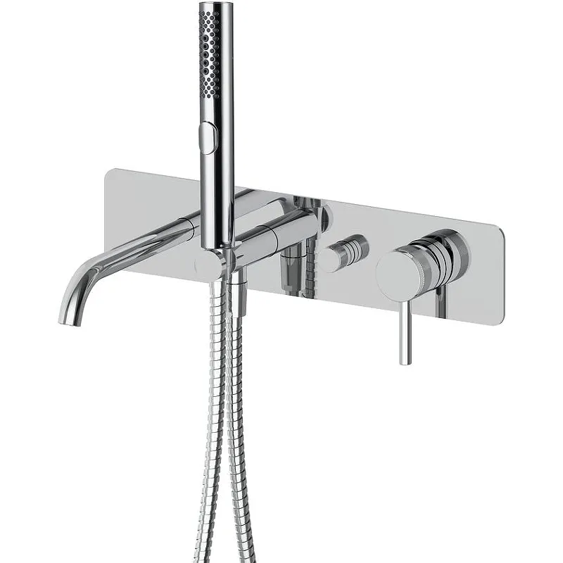 Смеситель для ванны Allen Brau Priority 5.31A05-00 с душевым гарнитуром.Характеристики: Цвет: хром. Материал: латунь. Управление: однорычажное. Механизм: керамический картридж Kerox. Излив: фиксированный. Стандарт подводки: G 1/2. Тип подводки: жесткая. Аэратор: интегрированный Neoperl. Переключатель режимов: поворотный. Материал ручного душа: ABS-пластик. Количество режимов струи ручного душа: 3. Душевой шланг из нержавеющей стали SUS304, длиной 1500 мм. Защита от перекручивания. Монтаж: встраиваемый. В комплекте поставки: Смеситель для ванны (внешняя и внутренняя части). Ручной душ. Душевой шланг. Держатель ручного душа. Аэратор.
