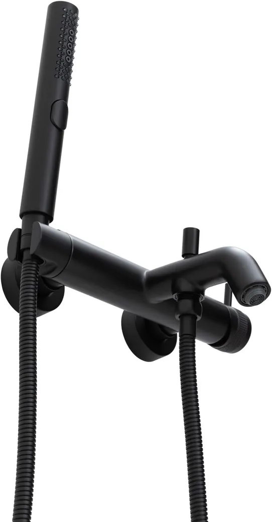Смеситель для ванны Allen Brau Priority 5.31D10-31 с душевым гарнитуром.Характеристики: Цвет: черный матовый. Материал: латунь. Управление: однорычажное. Механизм: керамический картридж Kerox. Излив: фиксированный. Стандарт подводки: G 1/2. Тип подводки: жесткая. Аэратор: силикон, Soft Neoperl. Дивертер. Материал ручного душа: ABS-пластик. Количество режимов струи ручного душа: 3. Душевой шланг из нержавеющей стали SUS304, длиной 1500 мм. Монтаж: на стену. В комплекте поставки: Смеситель для ванны. Ручной душ. Душевой шланг. Держатель ручного душа. Эксцентрики. Аэратор.