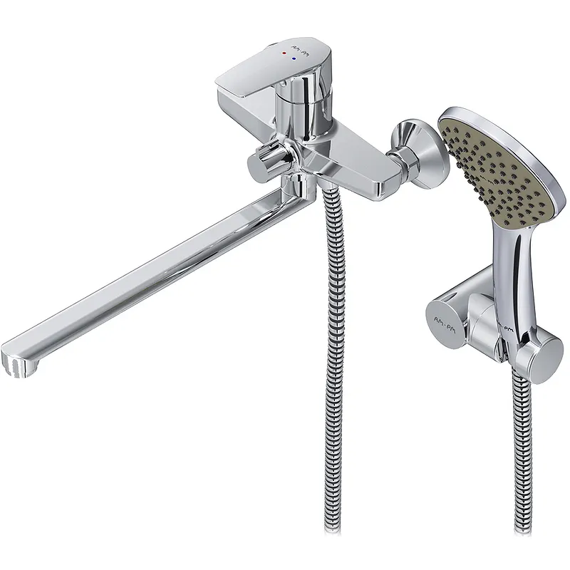 Смеситель для ванны AM.PM Gem F90A95000 универсальный - лаконичный дизайн смесителя превосходно дополнит большинство современных интерьеров ванных комнат.Характеристики: Цвет: хром. Материал: латунь, ABS-пластик, ПВХ. Управление: однорычажное. Механизм управления: Soft Motion 35 мм керамический картридж. Излив: длинный поворотный. Аэратор Honeycomb. Шланг с защитой от перекручивания. Переключатель ванна/душ: поворотный. Ручной душ: 1 режим струи (Spray). Диаметр: 12 см. Длина душевого шланга: 175 см. Стандарт подводки: 1/2. Монтаж: на стену. В комплекте поставки: Смеситель для ванны. Эксцентрики. Декоративные чаши. Ручной душ. Держатель для ручного душа. Душевой шланг. Инструкция.