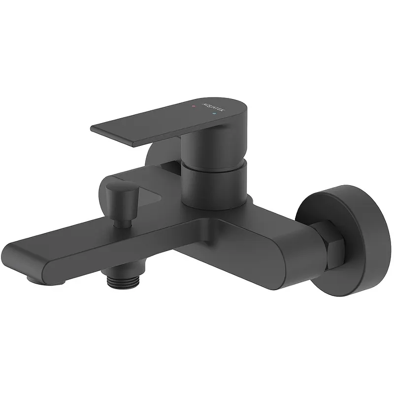 Смеситель для ванны Aquatek Лира AQ1440MB.Характеристики: Цвет: черный матовый. Материал: латунь. Материал рукоятки: цинковый сплав. Управление: однорычажное, система регулировки силы струи и температуры воды. Механизм: керамический картридж Citec 35 мм. Излив: фиксированный. Аэратор Neoperl. Легкая очистка аэратора. Латунный вытяжной переключатель на душ. Стандарт подводки: G 1/2. Отверстия для монтажа: 2. Монтаж: на стену. В комплекте поставки: Смеситель для ванны. S-образные эксцентрики. Декоративные отражатели.