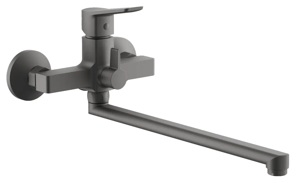 Смеситель для ванны однорычажный с длинным изливом и душем BELZ, оружейная сталь, арт-B22715-3
