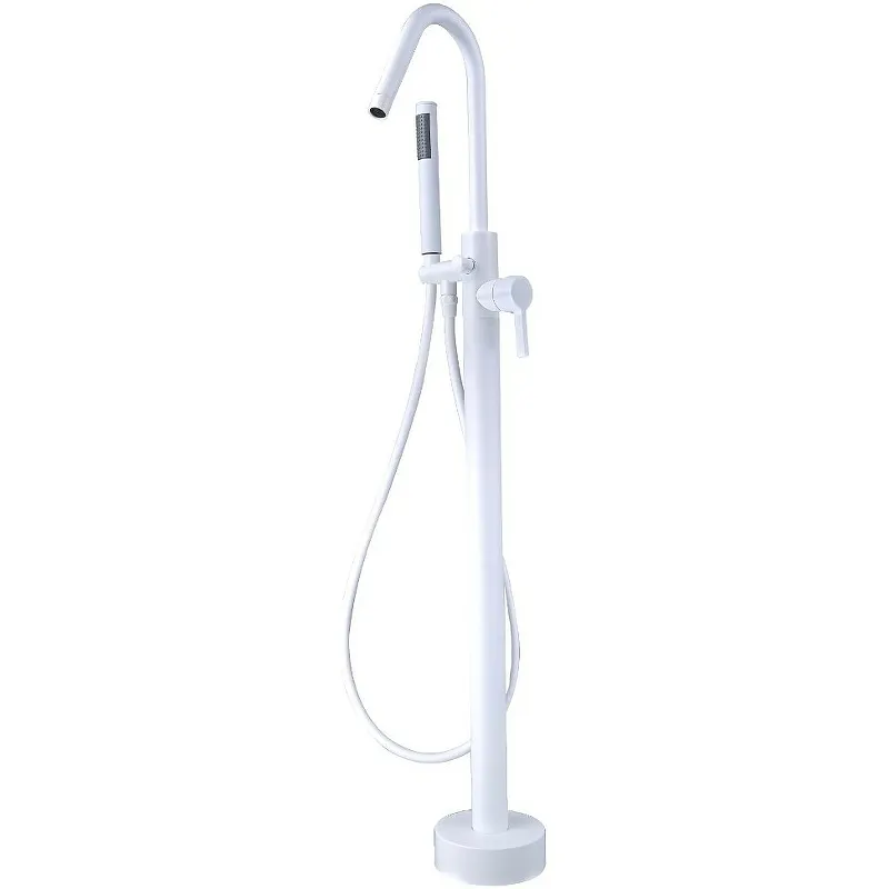 - Современный дизайн смесителя для ванны: Матовая поверхность и белый цвет создают стильный и элегантный вид.