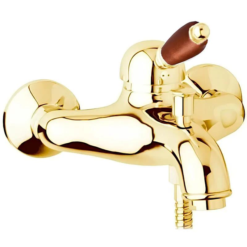 Смеситель для ванны Cezares Elite ELITE-VM-03/24-Nc.Характеристики: Цвет: золото 24 карат. Цвет ручки: орех. Материал: латунь. Управление: однорычажное. Механизм: керамический картридж. Излив: фиксированный. Стандарт подводки: G1/2. Аэратор. Рабочий интервал давления в водопроводной сети: 0.5-6.0 Атм. Монтаж: на стену. В комплекте поставки: Смеситель для ванны. Эксцентрики. Комплект креплений.