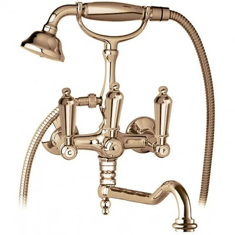 Смеситель для ванны Cezares First VDF FIRST-VDF-02-M.Характеристики: Тип управления: вентильное. Материал: высококачественная латунь с гладким покрытием, которое не теряет цвет со временем, устойчиво к царапинам и превосходно защищает от коррозии. Цвет корпуса: бронза. Цвет ручек: бронза. Дизайн: ретро. Длина излива: 23.5 см. Вращение излива: поворотный. Механизм: керамическая кран-букса. Девиатор обеспечивает движение воды в нужном направлении для автоматического переключения: ванна/душ. Рабочий интервал давления: 0,5 - 6 Атм. Стандарт подводки: G 1/2 дюйма. Оснащение: девиатор, душевая лейка, душевой шланг, держатель для душа, эксцентрики. Длина душевого шланга: 150 см. Монтаж: на стену. Отверстия для монтажа: 2 отверстия. В комплекте поставки: Смеситель. Душевой гарнитур. Комплект креплений. Инструкция.