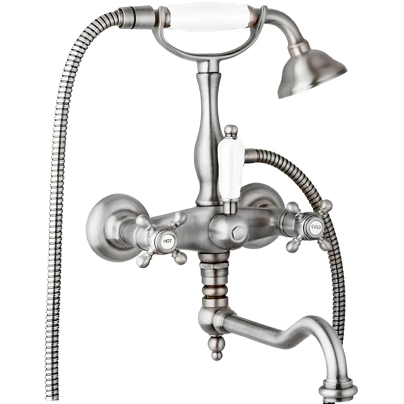 Смеситель для ванны Cezares Golf GOLF-VDF-01-Bi с душевым гарнитуром.Характеристики: Цвет: хром. Цвет ручки: белый. Материал: латунь. Управление: двухвентильное. Механизм: керамическая кран-букса. Излив: поворотный. Стандарт подключения: G 1/2. Аэратор. Рабочий интервал давления в водопроводной сети: 0.5-6.0 Атм. Количество режимов струи ручного душа: 1. Монтаж: на стену. В комплекте поставки: Смеситель для ванны. Ручной душ. Душевой шланг. Держатель ручного душа. Эксцентрики.
