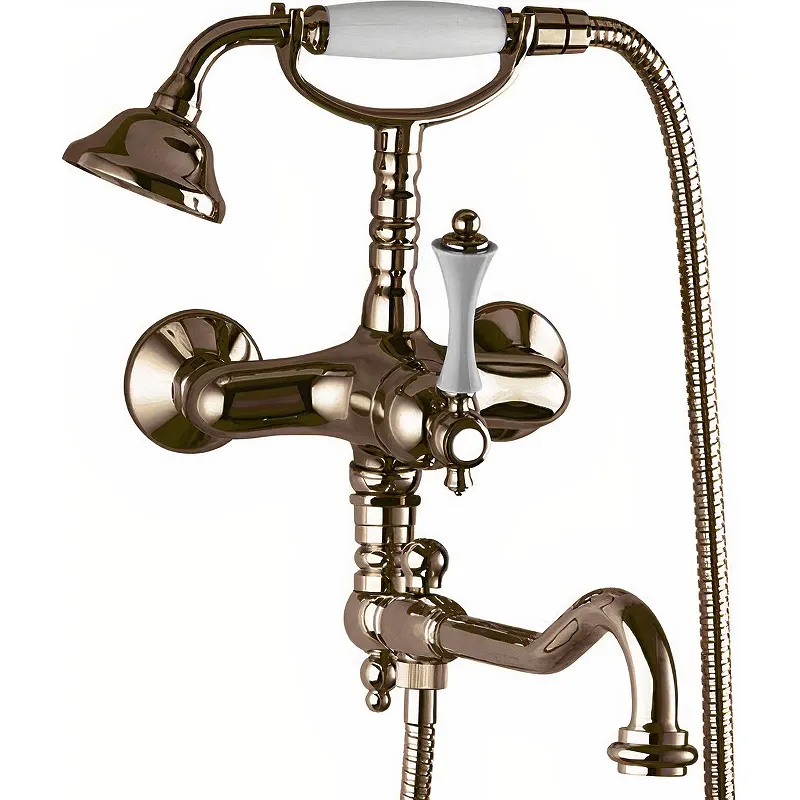 Смеситель для ванны Cezares Margot MARGOT-VDFM2-02-Bi однорычажный, с аэратором, с душевым гарнитуром, монтируемый в два отверстия.Характеристики: Цвет: бронза. Цвет ручек: белый. Материал: латунь. Управление: рычажное. Поворотный излив. Длина излива: 29,5 см. Механизм: керамический картридж. С аэратором. Переключатель душ/излив. Душевая лейка: однорежимная. Размер лейки: 8 см. Держатель лейки: фиксированный, на корпусе смесителям. Душевой шланг: гибкий, длиной 150 см. Стандарт подключения: G 1/2. Отверстия для монтажа: 2 отверстия. Рабочий интервал давления: 0,5-6 Атм. В комплекте поставки: Смеситель. Душевая лейка. Душевой шланг. Аэратор. Держатель для душевой лейки. Дивертор. Комплект креплений.