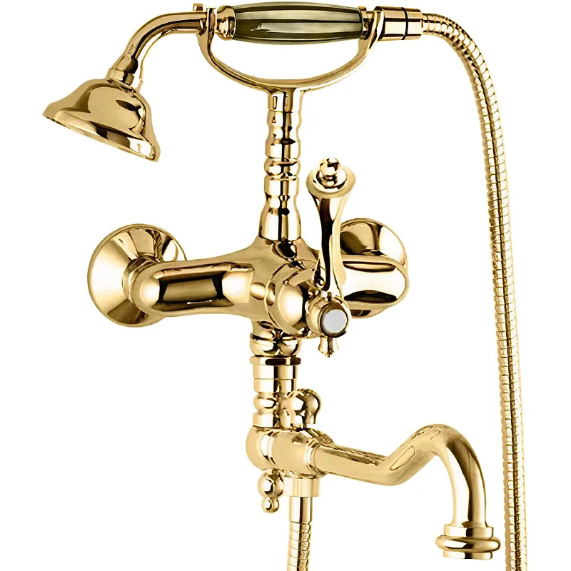 Смеситель для ванны Cezares Margot MARGOT-VDFM2-03/24-M однорычажный, с аэратором, с душевым гарнитуром, монтируемый в два отверстия.Характеристики: Цвет: золото 24 карат. Цвет ручки: золото 24 карат. Материал: латунь. Управление: рычажное. Поворотный излив. Длина излива: 29,5 см. Механизм: керамический картридж. С аэратором. Переключатель душ/излив. Душевая лейка: однорежимная. Размер лейки: 8 см. Держатель лейки: фиксированный, на корпусе смесителям. Душевой шланг: гибкий, длиной 150 см. Стандарт подключения: G 1/2. Отверстия для монтажа: 2 отверстия. Рабочий интервал давления: 0,5-6 Атм. В комплекте поставки: Смеситель. Душевая лейка. Душевой шланг. Аэратор. Держатель для душевой лейки. Дивертор. Комплект креплений.