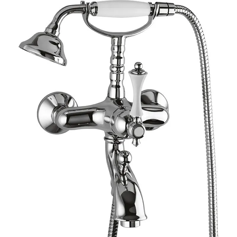 Настенный смеситель для ванны Cezares Margot MARGOT-VDM-01-Bi однорычажный, с аэратором, с душевым гарнитуром, монтируемый в два отверстия.Характеристики: Цвет: глянцевый хром. Цвет ручек: белый. Материал: латунь. Фиксированный излив: 14,5 см. Управление: рычажное. Механизм: керамический картридж. Переключатель душ/излив. Однорежимная душевая лейка. Размер лейки: 8 см. Фиксированный держатель лейки на смесителе. Гибкий душевой шланг. Стандарт подключения: G 1/2. Расстояние между центрами креплений: 15+/-2,5 см. Рабочий интервал давления: 0,5-6 Атм. В комплекте поставки: Смеситель. Душевая лейка. Душевой шланг. Аэратор. Держатель для душевой лейки. Дивертор. Комплект креплений.