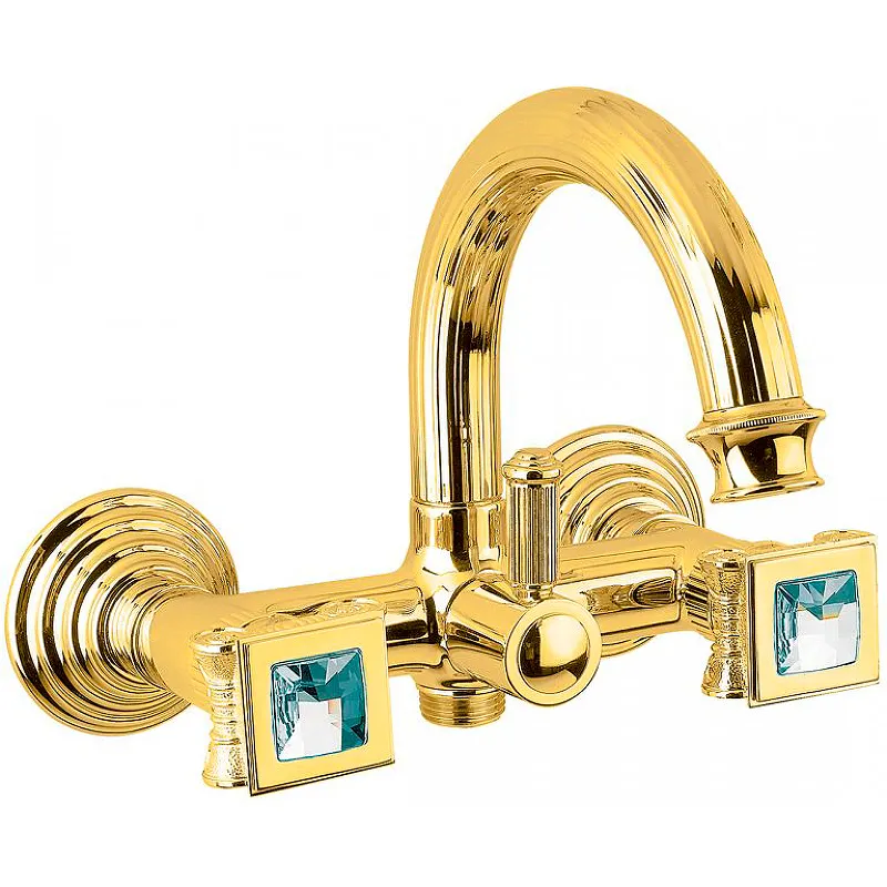 Смеситель для ванны Cezares Olimp OLIMP-VD-03/24-Sw.Характеристики: Цвет: золото 24 карат. Ручки: Swarovski. Материал: латунь. Управление: двухвентильное. Механизм: керамическая кран-букса. Излив: фиксированный. Стандарт подводки: G1/2. Аэратор. Дивертор. Рабочий интервал давления в водопроводной сети: 0.5-6.0 Атм. Монтаж: на стену. В комплекте поставки: Смеситель для ванны. Эксцентрики. Комплект креплений.
