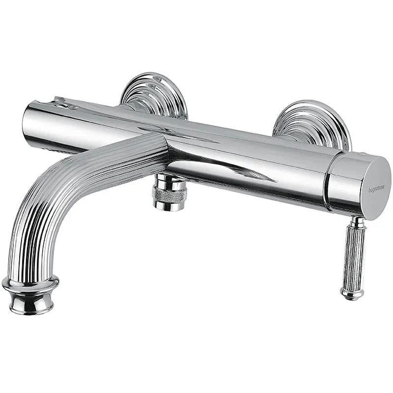 Смеситель для ванны и душа Cezares Olimp VM-L OLIMP-VM-01-L.Характеристики: Тип управления: рычажное. Материал: высококачественная латунь с гладким покрытием, которое не теряет цвет со временем, устойчиво к царапинам и превосходно защищает от коррозии. Цвет корпуса: хром. Длина излива: 19.6 см. Вращение излива: фиксированный. Механизм: керамический картридж. Девиатор обеспечивает движение воды в нужном направлении для автоматического переключения: ванна/душ. Рабочий интервал давления: 0,5 - 6 Атм. Стандарт подводки: G 1/2 дюйма. Оснащение: эксцентрики, аэратор, девиатор. Монтаж: на стену. Отверстия для монтажа: 2 отверстия. В комплекте поставки: Смеситель. Комплект креплений. Инструкция.
