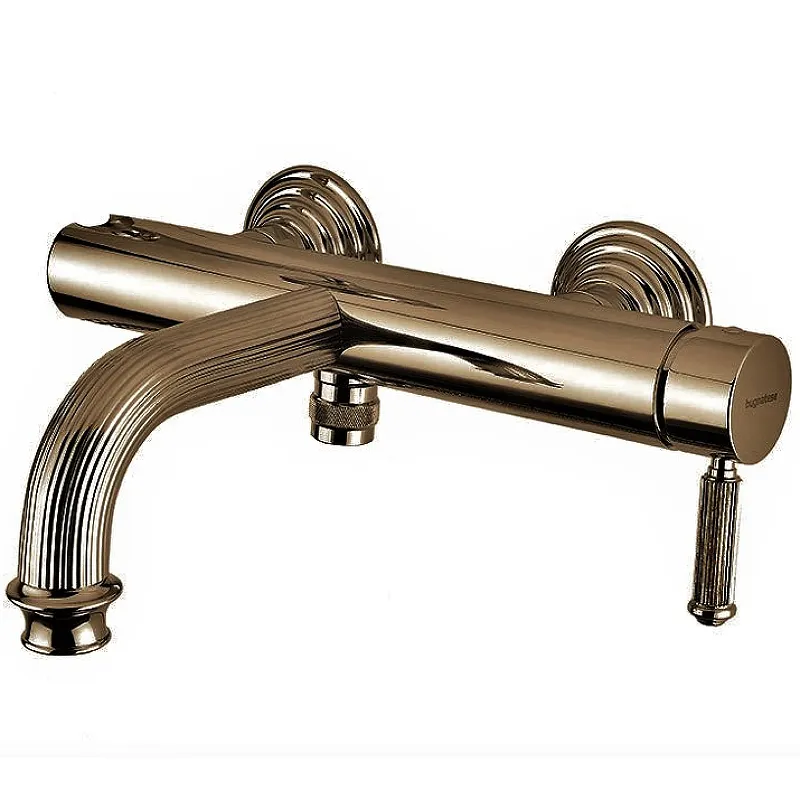 Смеситель для ванны и душа Cezares Olimp VM-L OLIMP-VM-02-L.Характеристики: Тип управления: рычажное. Материал: высококачественная латунь с гладким покрытием, которое не теряет цвет со временем, устойчиво к царапинам и превосходно защищает от коррозии. Цвет корпуса: бронза. Длина излива: 19.6 см. Вращение излива: фиксированный. Механизм: керамический картридж. Девиатор обеспечивает движение воды в нужном направлении для автоматического переключения: ванна/душ. Рабочий интервал давления: 0,5 - 6 Атм. Стандарт подводки: G 1/2 дюйма. Оснащение: эксцентрики, аэратор, девиатор. Монтаж: на стену. Отверстия для монтажа: 2 отверстия. В комплекте поставки: Смеситель. Комплект креплений. Инструкция.