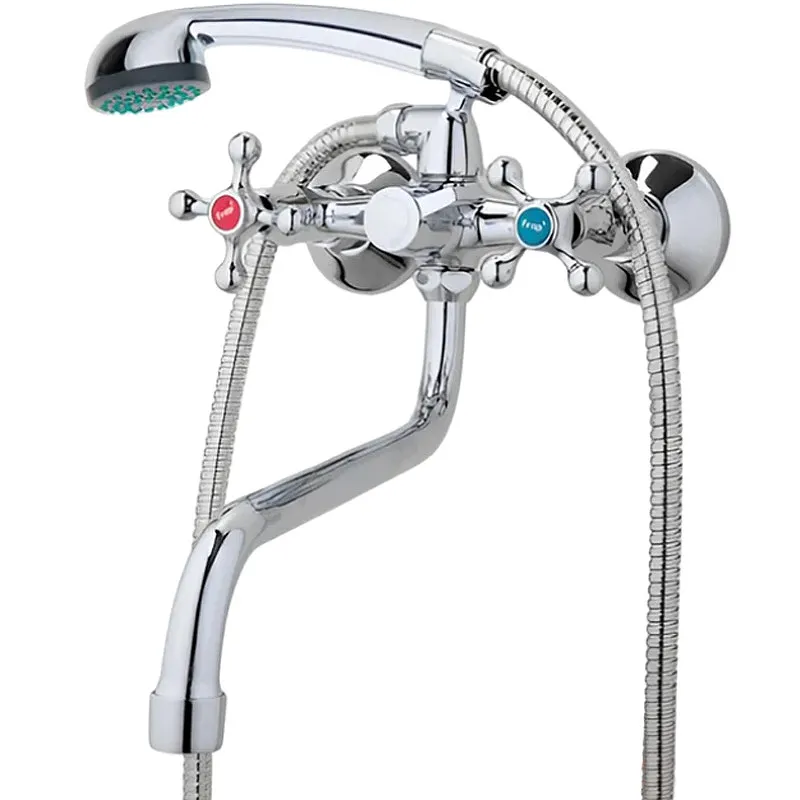 Смеситель для ванны Frap H08 F2208-2 универсальный.Характеристики: Материал: латунь. Цвет: хром. Управление: двухвентильный. Поворотный излив. Поворотное переключение на душ. Керамическая кран-букса. Способ монтажа: на два отверстия, настенный. С аэратором. В комплекте поставки: Смеситель. Душевой шланг 150 см. Душевая лейка. Держатель лейки. Комплект отражателей. Комплект эксцентриков.