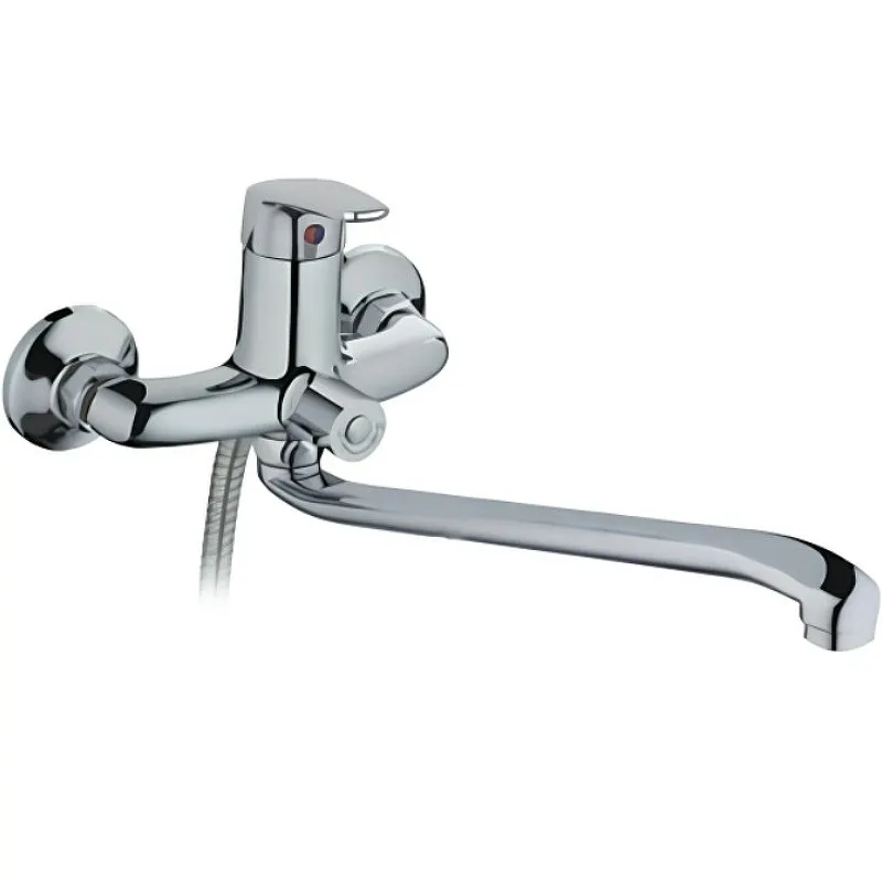 Смеситель для ванны Frap H16 F2216 универсальный.Характеристики: Материал: латунь. Цвет: хром. Управление: однорычажный. Поворотный излив. Поворотное переключение на душ. Керамический картридж 35 мм. Способ монтажа: на два отверстия, настенный. С аэратором. В комплекте поставки: Смеситель. Душевой шланг 150 см. Душевая лейка. Держатель лейки. Комплект отражателей. Комплект эксцентриков.