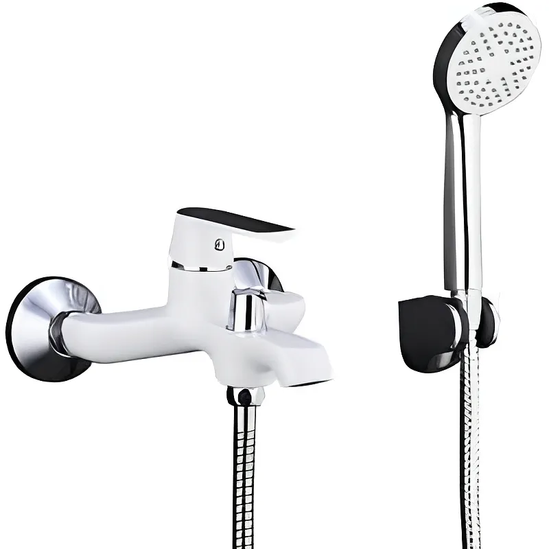 Смеситель для ванны Frap H31 F3231 с душевым гарнитуром.Характеристики: Цвет: белый, хром. Материал: латунь. Управление: однорычажное. Механизм: керамический картридж. Излив: фиксированный. Монтаж: на стену. Аэратор. Тип подводки: жесткая. Стандарт подводки: 1/2. Длина шланга: 1.5 м. В комплекте поставки: Смеситель для ванны. Душевой шланг. Душевая лейка. Держатель лейки. Комплект отражателей. Комплект эксцентриков. Комплект креплений.