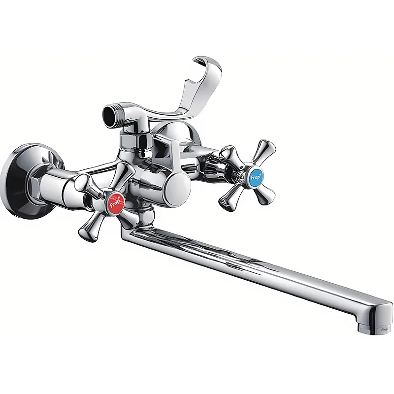 Смеситель для ванны Frap H732 F22732-B универсальный.Характеристики: Цвет: хром. Материал: силумин. Управление: двухвентильное. Механизм: керамическая кран-букса. Монтаж: на стену. Стандарт подводки: G 1/2. Отверстий для монтажа: 2. Аэратор. В комплекте поставки: Смеситель. Душевой шланг 1.5 м Душевая лейка. Держатель лейки. Комплект отражателей. Комплект эксцентриков.