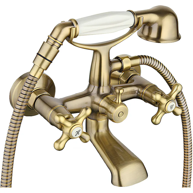 Смеситель для ванны Gappo G63-4 G3263-4 с душевым гарнитуром.Характеристики: Цвет: бронза. Материал: латунь. Управление: двухвентильное. Механизм: керамическая кран-букса. Излив: поворотный. Монтаж: на стену. Аэратор. Тип подводки: жесткая. Стандарт подводки: 1/2. Длина шланга: 1.5 м. Отверстий для монтажа: 2. В комплекте поставки: Смеситель для ванны. Душевой шланг. Душевая лейка. Держатель лейки. Комплект отражателей. Комплект эксцентриков. Комплект креплений.