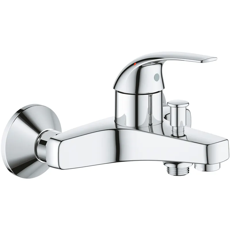 Смеситель для ванны Grohe BauCurve 23599000.Характеристики: Цвет: хром. Материал: латунь. Металлический рычаг. Технология Grohe Long-Life Shine: стойкий сверкающий блеск. Управление: однорычажное. Механизм: керамический картридж Grohe Long-Life 35 мм. Излив: фиксированный. Стандарт подводки: 1/2. Автоматический переключатель: ванна/душ. Скрытые S-образные эксцентрики. Отражатель из металла. Аэратор. Монтаж: на стену. В комплекте поставки: Смеситель для ванны.