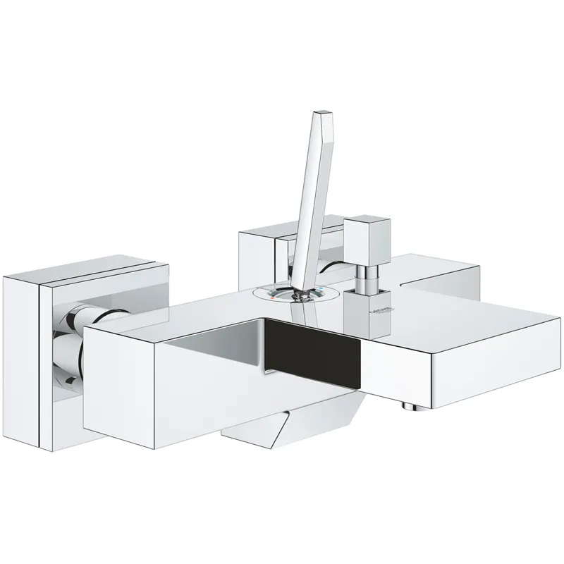 Смеситель для ванны Grohe Eurocube Joy 23666000.Характеристики: Цвет: хром. Материал: латунь. Металлический рычаг. Технология Grohe Long-Life Shine: стойкий сверкающий блеск. Управление: однорычажное. Механизм: керамический картридж Grohe FeatherControl Joystick. Излив: фиксированный, Grohe XL Waterfall (каскадный). Стандарт подводки: 1/2. Встроенный обратный клапан в душевом отводе 1/2. Скрытые S-образные эксцентрики. Защита от обратного потока. Монтаж: на стену. В комплекте поставки: Смеситель для ванны.