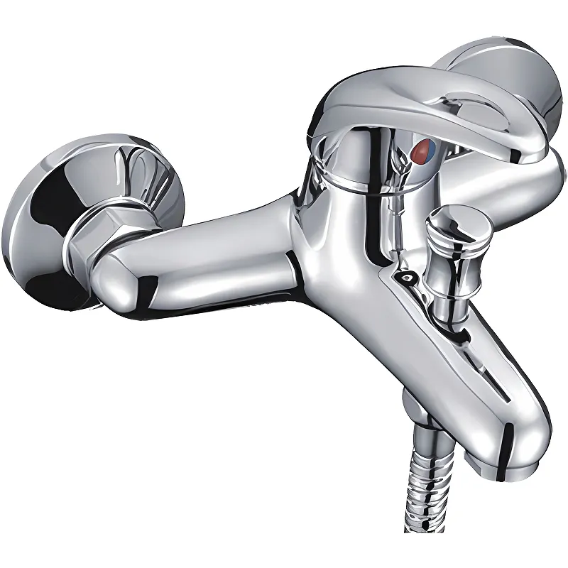 - Хромированный смеситель для ванны с душевым гарнитуром: Гладкая глянцевая поверхность устойчива к появлению пятен и легко очищается.