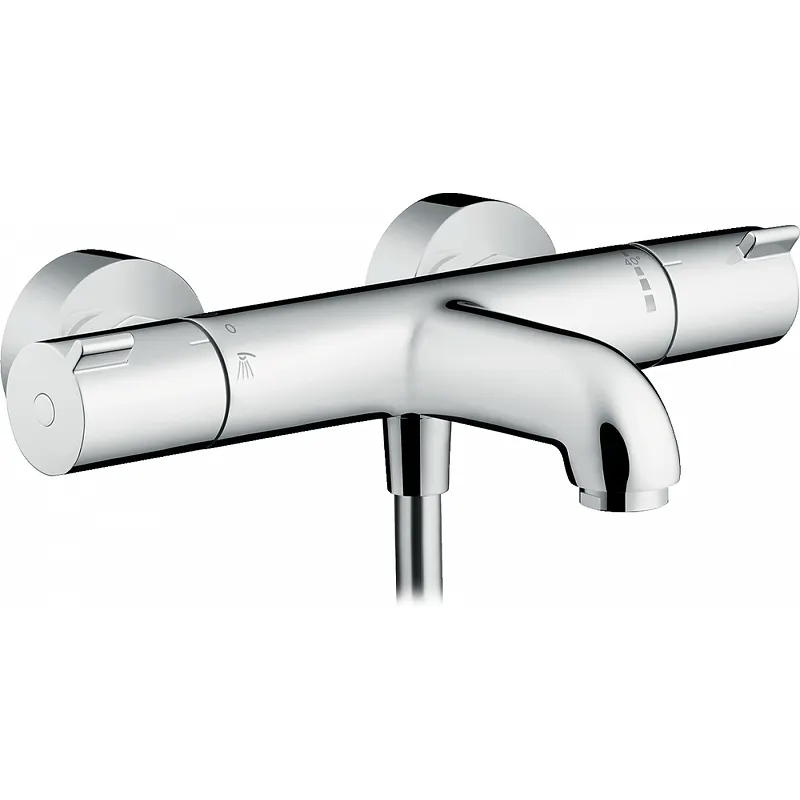 Смеситель для ванны Hansgrohe Ecostat 1001 CL 13201000 с термостатом.Характеристики: Цвет: хром. Материал: латунь. Материал рукояток: металл. Управление: термостат. Механизм: термостатический картридж, запорный и переключающий вентиль. Предохранительная остановка при 40 градусов. Излив: фиксированный. Стандарт подводки: G 1/2. 2 функции. Максимальный объем расхода воды при 3 барах: 20 л/мин. Объем расхода воды для излива при 3 барах: 20 л/мин. Объем расхода воды ручного душа при 3 барах: 16 л/мин. Минимальное рабочее давление 1 бар. Максимальный напор воды: 10 бар. Регулируемое ограничение температуры. Обратный клапан. Шумопоглотитель. S-образные эксцентрики. Грязеулавливающий фильтр. Технология Air Power: экономия воды благодаря смешиванию воды с воздухом. Аэратор. Монтаж: на стену. В комплекте поставки: Смеситель для ванны. S-соединения. Аэратор. Комплект креплений. Инструкция.