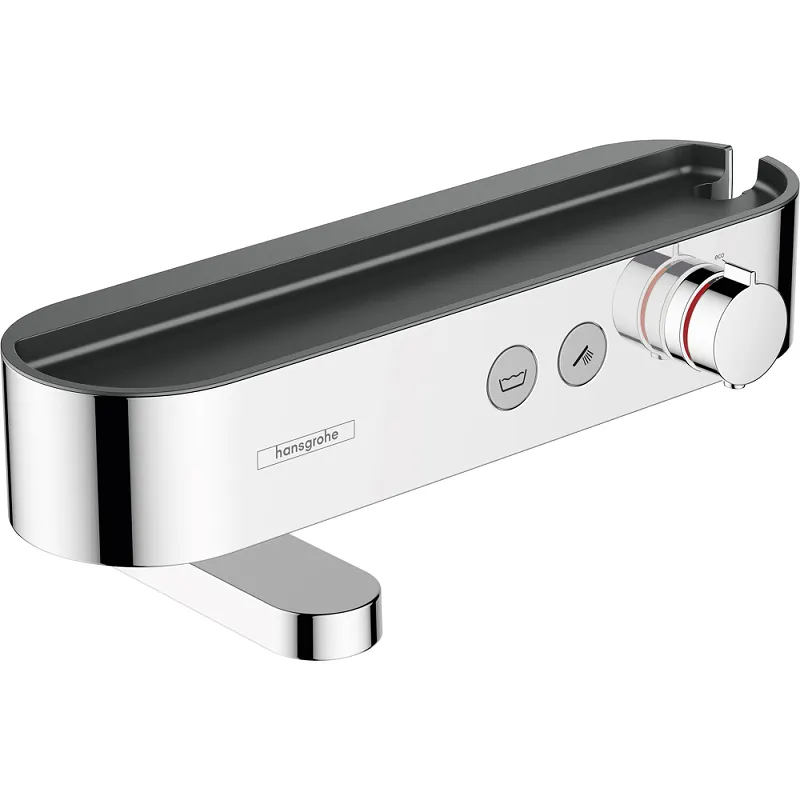 Смеситель для ванны Hansgrohe ShowerTabletSelect 400 24340000 с термостатом.Характеристики: Цвет: хром. Материал: латунь. Управление: термостат. Механизм: термостатический картридж, клапан Select. Поворотный излив. Регулировка температуры и напора. Регулируемое ограничение температуры. Предохранительный ограничитель при 40 градусах. Кнопка Select включения / выключения для 2 потребителей. CoolContact термостат: предотвращает нагрев корпуса, делая принятие душа еще безопаснее. Контроль напора регулирует до 30 процентов расхода воды. Максимальный расход воды при 3 барах: 18,7 л/мин. Расход воды изливом на ванны при 3 барах: 18,7 л/мин. Расход воды ручным душем при 3 барах: 15,9 л/мин. Мин. рабочее давление: 1 бар. Макс. рабочее давление: 10 бар. С изолированной подачей воды. Клапан обратного тока воды. Со встроенной защитной комбинацией EN 1717. С шумопоглотителем. Полка из пластика. Поверхность полочки: графит. Грязеулавливающий фильтр. Стандарт подводки: G1/2. Монтаж: на стену. В комплекте поставки: Смеситель. Комплект креплений.