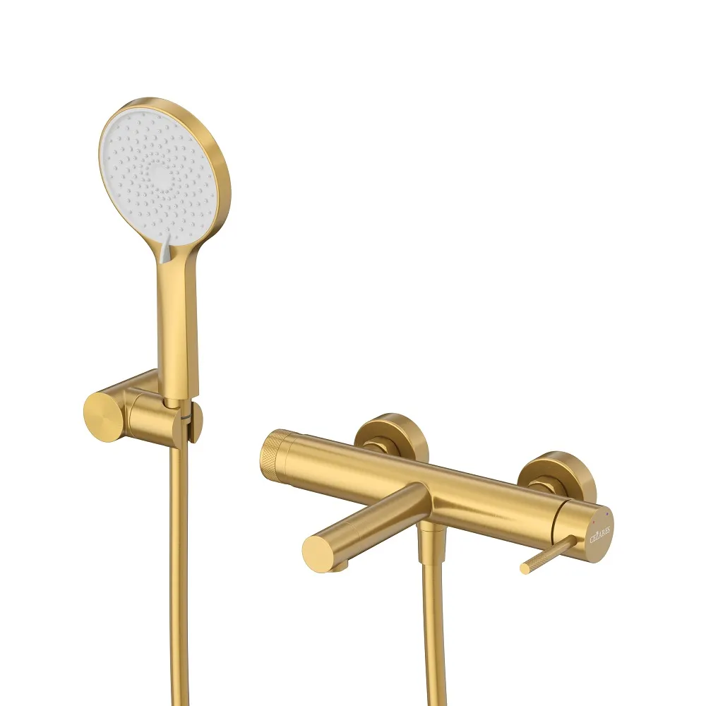 Смеситель для ванны Cezares в изысканном брашированном золоте станет элегантным акцентом в вашей ванной комнате. Благодаря настенному монтажу и однорычажному управлению, он обеспечивает лёгкое и удобное использование для всей семьи.