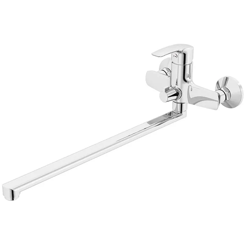 - Универсальность: Поворотный излив длиной 42 см позволяет использовать смеситель как для ванны, так и для раковины.