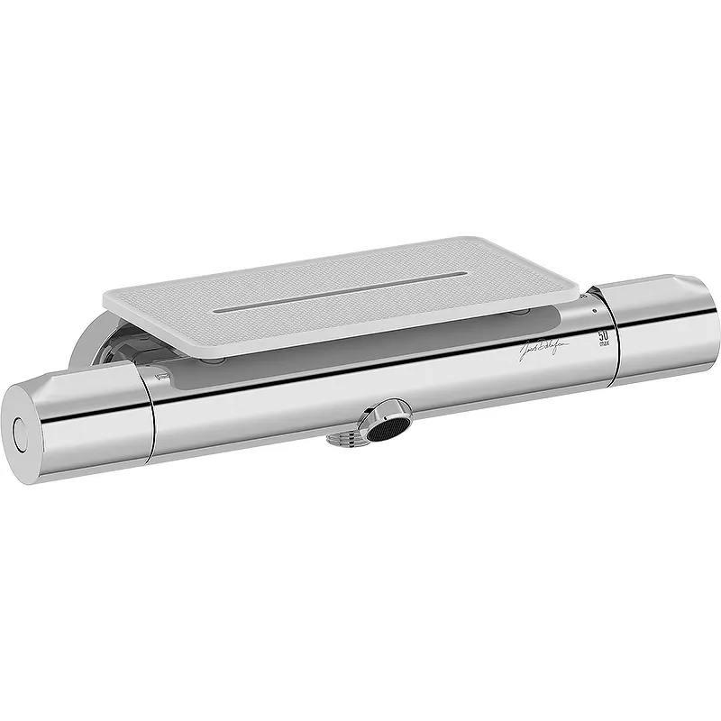 Смеситель для ванны Jacob Delafon Metro E21768-CP с термостатом и полкой.Характеристики: Высокая точность настройки. 38 градусов базовая температура. Полка с противоскользящей поверхностью. Эргономичные ручки со встроенным дивертором. Эко стоп на 50 процентов от полного потока. Горячая вода в задней части смесителя и ограничение температуры 50 градусов. Блокирование потока воды при отключении холодной воды. Материал: латунь. Цвет: хром. Может работать с водонагревателем любого типа. Металлический ручки. В комплекте поставки: смеситель, полка.