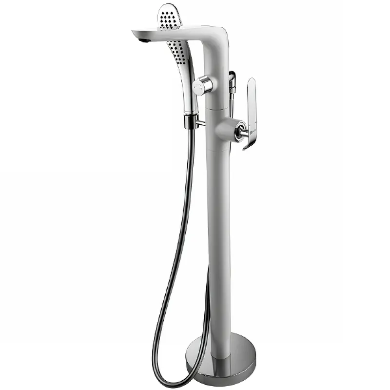 Смеситель для ванны Lemark Melange LM4944CW — это идеальное решение для тех, кто ценит стиль и функциональность. Данный напольный смеситель для ванны с душевым гарнитуром выполнен в современном дизайне и отличается высоким качеством. Материал — латунь, а его бело-хромовое покрытие придаёт уникальный эстетический вид, идеально вписывающийся в любой интерьер ванной комнаты.