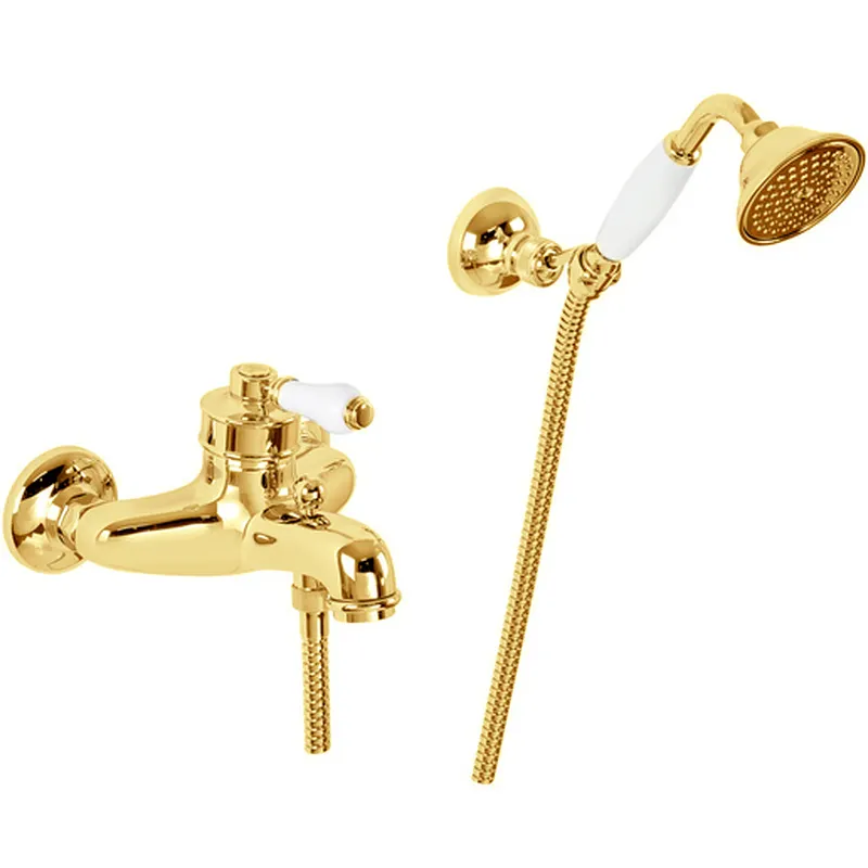 Смеситель для ванны Migliore Ermitage 18627.Станет изящным украшением Вашей ванной комнаты. Поможет в создании красивого и функционального дизайна помещения в классическом или ретро стиле. Отличается плавными изгибами корпуса и оригинальной ручкой смесителя.Характеристики: Цвет: золото. Материал: латунь. Высококачественный латунный сплав, который обеспечивает прочность, устойчивость к влаге и температурным перепадам. Специальное лаковое покрытие защищает внешнюю часть смесителя от быстрого износа. Фиксированный излив с аэратором. Однорычажная система управления. Оригинальная ручка выполнена в белом цвете. Керамический картридж. Переключатель на ручной душ. Стандарт подключения: G 1/2. Дивертор. Монтаж: на стену. В комплекте поставки: Смеситель.Лейка.Металлический шланг.Настенный регулируемый держатель.Эксцентрики - 2 шт.Набор для монтажа.