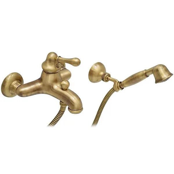 Смеситель для ванны Migliore Maya 18913.Однорычажный смеситель с фиксированным изливом и аэратором, с душевым гарнитуром.Характеристики: Монтаж: на стену. Отверстий для монтажа: 2. Стандарт подключения: G 1/2. Материал: высококачественный латунный сплав, который обеспечивает прочность, устойчивость к влаге и температурным перепадам. Покрытие: специальное лаковое покрытие защищает внешнюю часть смесителя от быстрого износа. Цвет: бронза. Однорычажная система управления. Переключатель на ручной душ. Механизм: керамический картридж. Фиксированный излив с аэратором. Душевой гарнитур: ручной душ, металлический шланг, настенный регулируемый держатель. Совместимость с проточным водонагревателем. В комплекте поставки: Смеситель. Лейка однофункциональная. Шланг металлический, подключение к лейке. Настенный регулируемый держатель для душа.