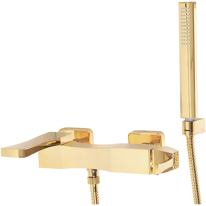 Смеситель для ванны Migliore Opera 19050.Характеристики: Цвет: золото. Материал: высококачественный латунный сплав. Специальное лаковое покрытие защищает внешнюю часть смесителя от быстрого износа. Фиксированный излив с аэратором. Однорычажная система управления. Керамический картридж. Переключатель на ручной душ. Душевой гарнитур: ручной душ, металлический шланг длиной 150 см, настенный держатель. Защита от обратного потока. Совместим с проточным водонагревателем. Стандарт подключения: G 1/2. Монтаж: на стену. В комплекте поставки: смеситель, лейка, шланг, держатель.