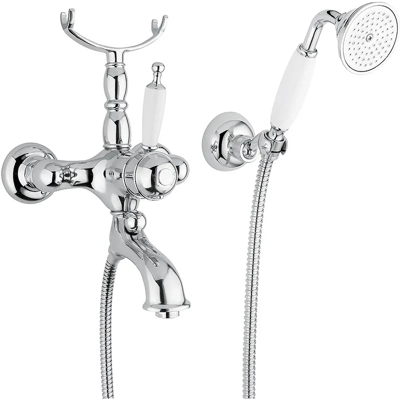 Смеситель для ванны Migliore Oxford 19126 с термостатом.Характеристики: Цвет: хром. Материал: высококачественный латунный сплав. Специальное лаковое покрытие защищает внешнюю часть смесителя от быстрого износа. Система управления: термостат. Защита от обратного потока. Совместим с проточным водонагревателем. Утонченная ручка выполнена в белом цвете. Термостатический картридж. Фиксированный излив с аэратором. Переключатель на ручной душ. Душевой гарнитур: ручной душ, металлический шланг, держатель. Стандарт подключения: G 1/2. Монтаж: на стену. В комплекте поставки: смеситель, лейка, шланг, держатель.