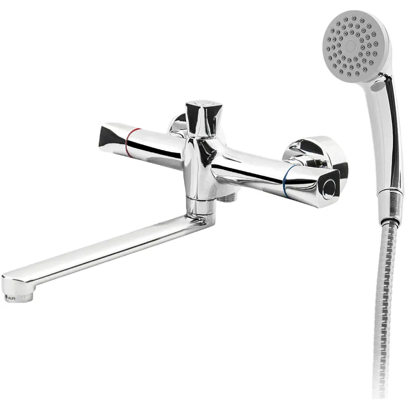 Смеситель для ванны Orange Alfi M82-214cr универсальный.Характеристики: Цвет: хром. Материал: латунь. Управление: вентильное. Механизм: керамические кран-буксы. Излив: поворотный. Аэратор. Поворотный дивертор. Размер ручного душа: 80 мм. Количество режимов ручного душа: с 1 режимом струи. Длина шланга: 1500 мм с защитой от перекручивания (в металлической оплетке). Стандарт подключения: G 1/2. Монтаж: на стену. В комплекте поставки: Смеситель. Душевой шланг. Душевая лейка. Держатель лейки. Отражатели. Эксцентрики.
