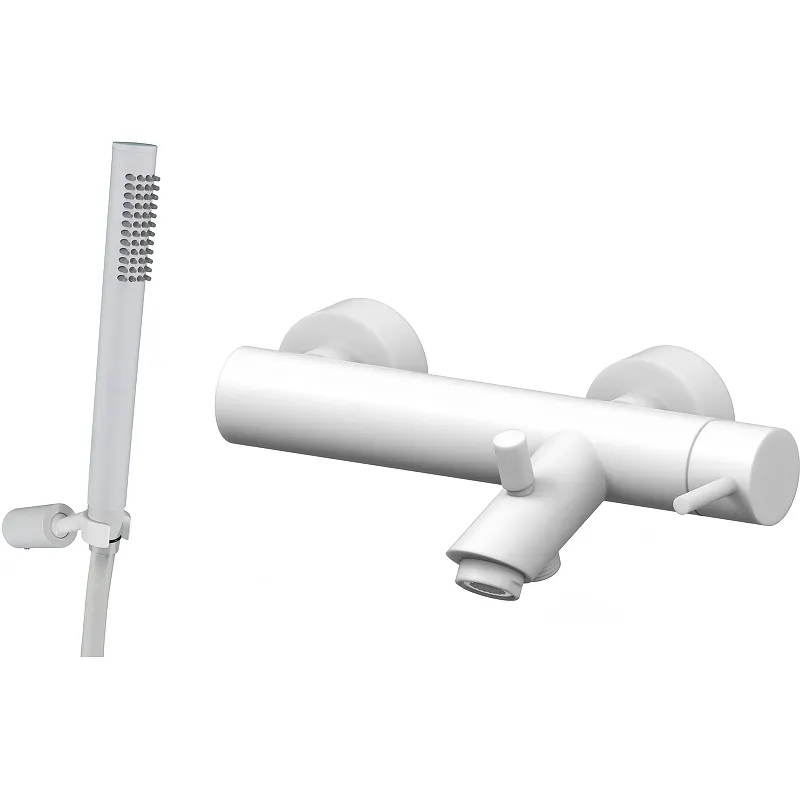 Смеситель для ванны Paffoni Light LIG023BO с душевым гарнитуром.Характеристики: Цвет: белый. Материал: латунь. Поверхность: матовая Ручной душ со шлангом. Тип управления: однорычажный. Тип картриджа: керамический. Стандарт подключения: G 1/2. Монтаж: на стену. В комплекте поставки: Смеситель. Ручной душ. Шланг. Держатель.