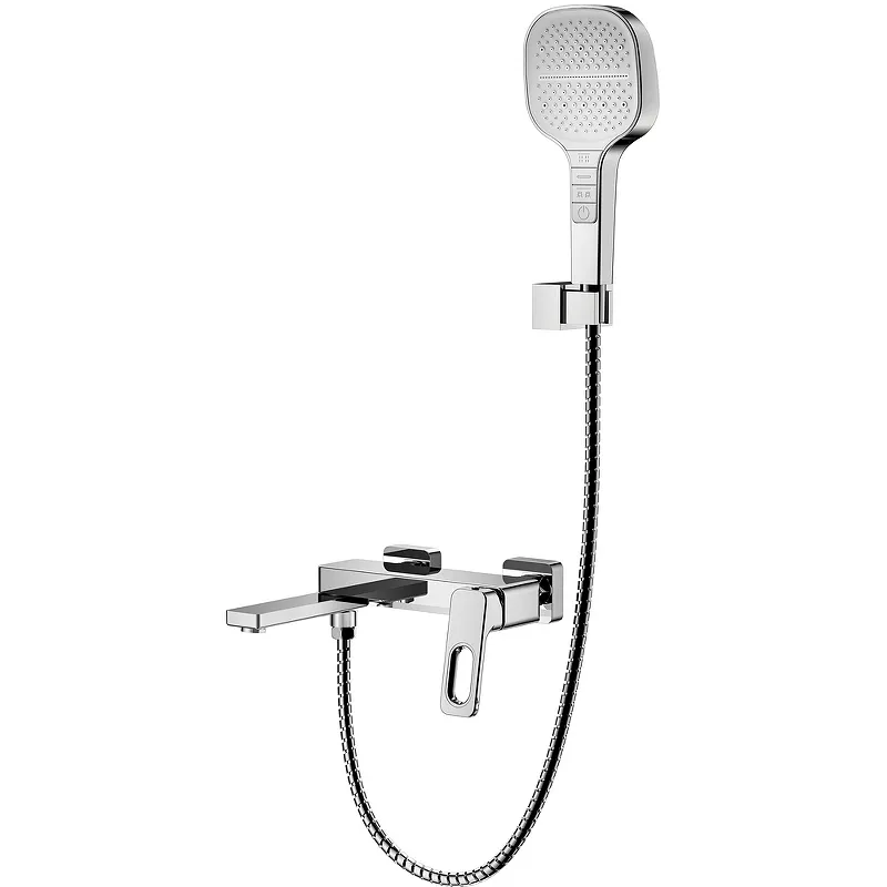 - Душевой гарнитур в комплекте: Включает ручной душ с тремя режимами струи и кнопочным переключением, что делает процесс принятия душа ещё более комфортным.