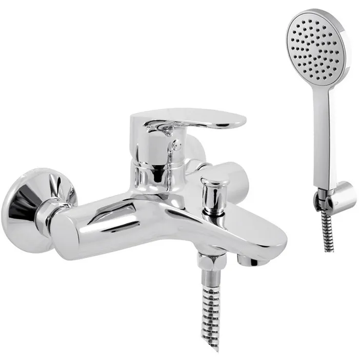 Смеситель для ванны и душа Rav Slezak Amur AM754.5/1.Изящная модель для ванных комнат в современном стиле.Смеситель изготовлен из качественной латуни с гладким покрытием цвета хром. Монолитный излив. Аэратор Neoperl. Керамический картридж Kerox (Венгрия) KA3502 35 мм. Кнопочный переключатель ванна-душ. Душевая лейка и гибкий шланг длиной 150 см. Фиксированный настенный держатель для ручного душа. Стандарт подключения: G 1/2.В комплекте поставки: смеситель, набор креплений.