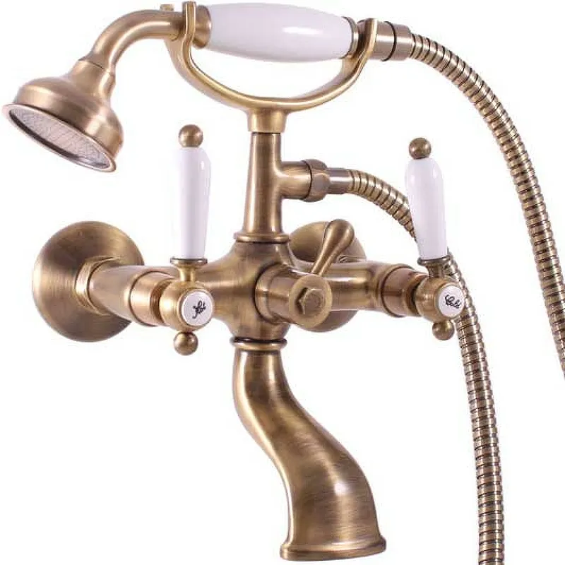 Смеситель для ванны Rav Slezak Morava retro MK559.5/2SM.Характеристики: Цвет: бронза. Материал: латунь. Механизм: керамические кран-буксы. Тип управления: двухвентильный. Излив: фиксированный. Аэратор. Шланг металлический с двойной оплеткой, длиной 1500 мм. Латунная душевая лейка с керамической ручкой. Стандарт подводки: 1/2. Отверстий для монтажа: 2. Монтаж: настенный. В комплекте поставки: Смеситель. Душевой шланг. Душевая лейка. Держатель для лейки.
