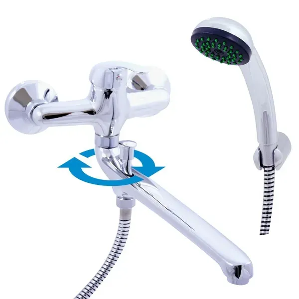 Универсальный смеситель с длинным изливом Rav Slezak Sazava SA057.5/1.Изящная модель для ванных комнат в современном стиле.Смеситель изготовлен из качественной латуни с гладким покрытием цвета хром. Монолитный поворотный излив SR0640: подходит для ванны и для раковины. Аэратор Neoperl. Керамический картридж Kerox (Венгрия) KA3502E 35 мм. Керамический переключатель ванна-душ. Ручной душ с пластиковым душевым диском. Гибкий шланг длиной 150 см. Фиксированный настенный держатель для лейки. Стандарт подключения: G 1/2.В комплекте поставки: смеситель, набор креплений.