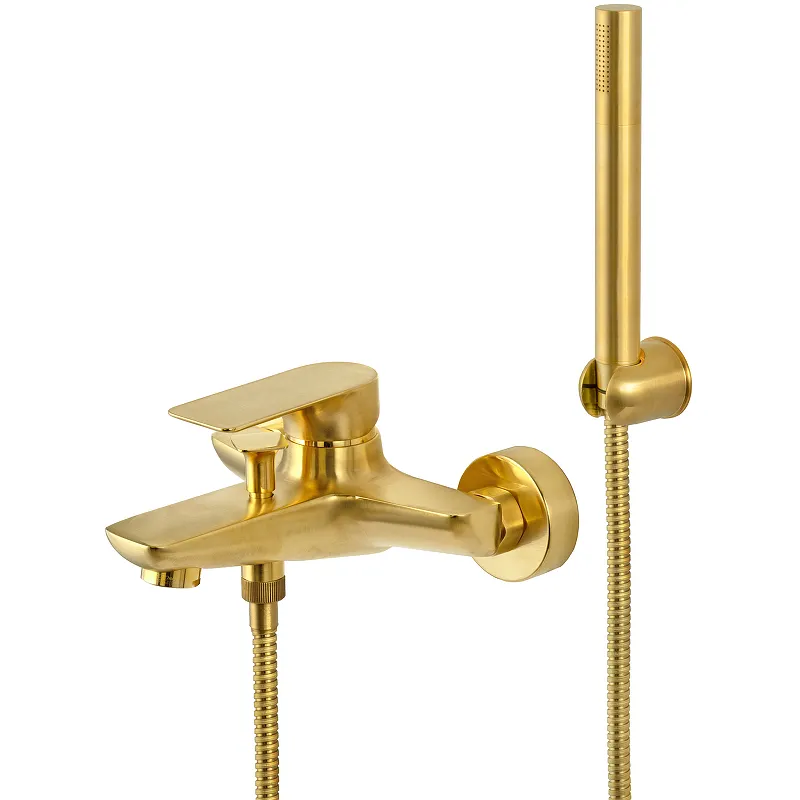 - Современный дизайн: Золото брашированное покрытие добавляет интерьеру роскошь и стиль, делая смеситель центральным элементом ванной комнаты.